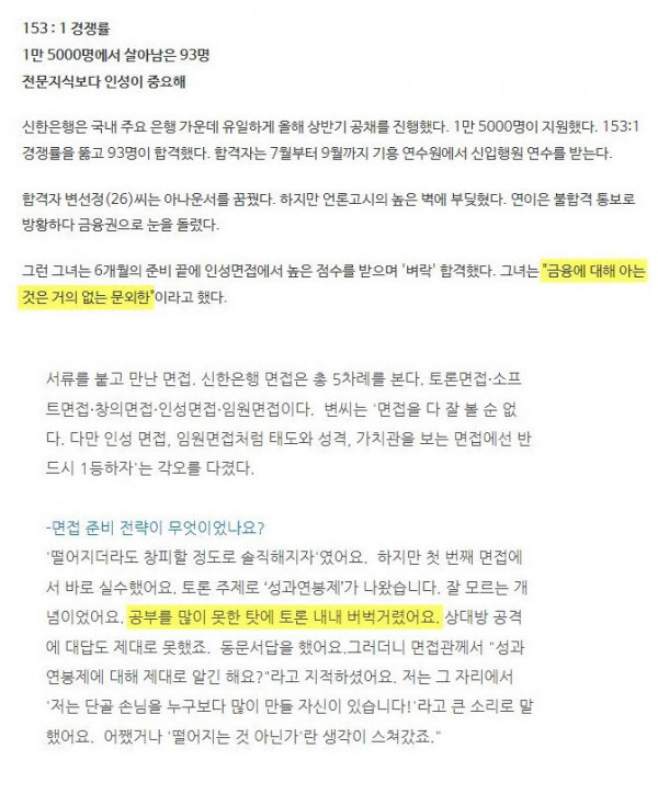 아무 스펙없이 단번에 신한은행 합격한 처자