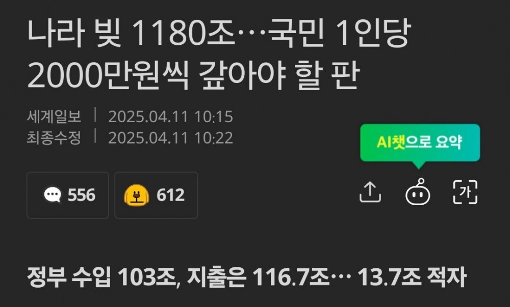 나라 빚 1180조 국민 1인당 2000만원씩 갚아야 할 판 작성자 정보 맹구공 0 3398 2025.04.13 10:33 컨텐츠 정보 가+ 가- 목록 본문 돌려받지도 못하는 국민연금 내는것도 빡치는데 ㅂㄷㅂㄷ... 🔥 최근 인기글 🤣🤣🤣 SNS로 친구들에게 공유해서 같이 즐겨요~! 👇👇 관련자료 댓글 0 등록된 댓글이 없습니다. 로그인한 회원만 댓글 등록이 가능합니다. 목록