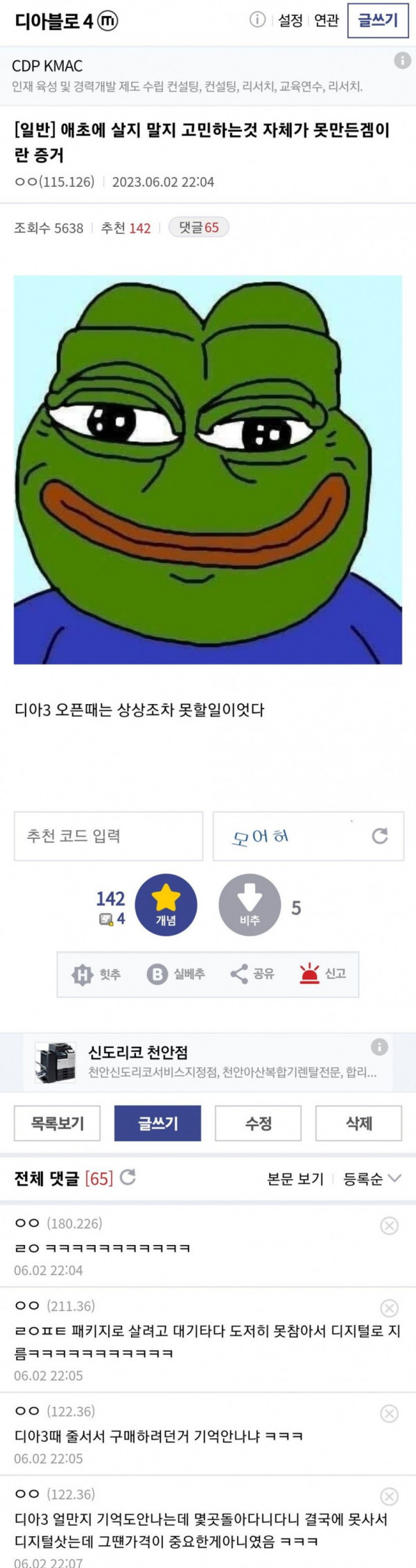근데 디아4 ㅈ망했나본데 작성자 정보 맹구공 0 3039 2023.06.03 12:20 컨텐츠 정보 가+ 가- 목록 본문 🔥 최근 인기글 🤣🤣🤣 SNS로 친구들에게 공유해서 같이 즐겨요~! 👇👇 관련자료 댓글 0 등록된 댓글이 없습니다. 로그인한 회원만 댓글 등록이 가능합니다. 목록