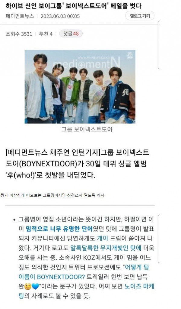 하이브 신입그룹 이름이 몬가 이상함 작성자 정보 맹구공 0 3148 2023.06.05 04:58 컨텐츠 정보 가+ 가- 목록 본문 🔥 최근 인기글 🤣🤣🤣 SNS로 친구들에게 공유해서 같이 즐겨요~! 👇👇 관련자료 댓글 0 등록된 댓글이 없습니다. 로그인한 회원만 댓글 등록이 가능합니다. 목록